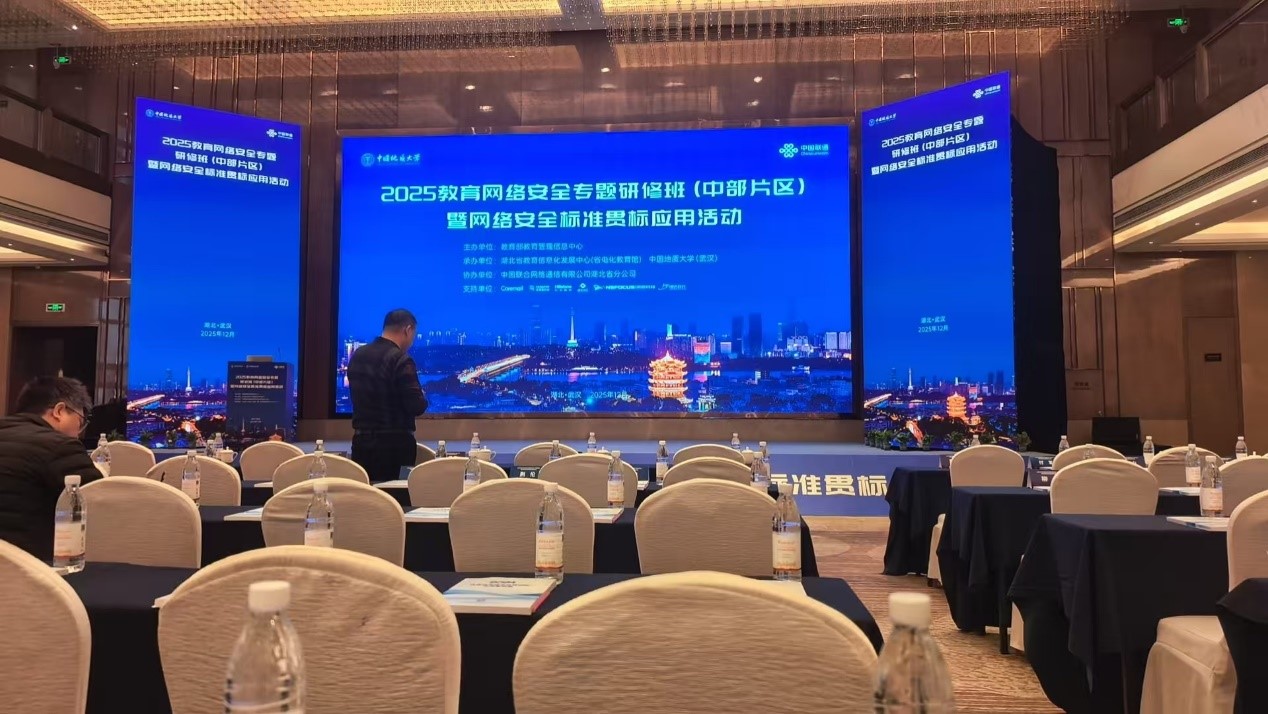 2025年12月3日至12月5日,我校信息化管理中心信息技术科教师胡开开参加了由教育部教育管理信息中心主办,湖北省教育信息化发展中心与中国地质大学(武汉)联合承办的2025教育网络安全专题研修班(中部片区)暨网络安全标准贯标应用活动。