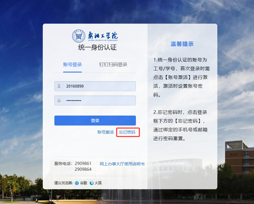 进入网上办事大厅登录页,点击【忘记密码】,进行密码找回。