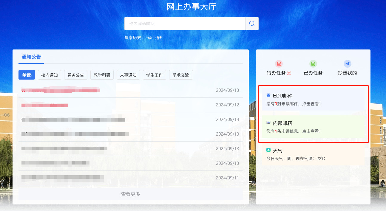 (3)内部邮箱:在日常办公中,用来发送、接收校内各类文件,查看通知公告等消息提醒。
